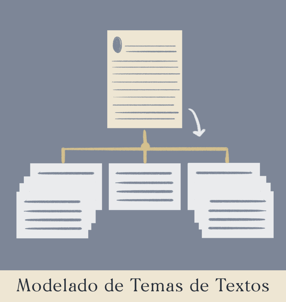 - En una base de datos de textos, el modelo de topic modeling Latent Dirichlet Allocation propone interpretar las variables latentes como temas recurrentes. Esta traducción puede visualizarse mediante una nube de palabras con sus respectivos pesos.