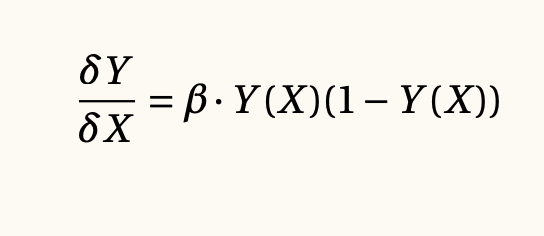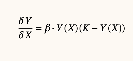 En este caso, la razón de cambio del tamaño de la población Y no solo es proporcional a su tamaño actual, sino también a la diferencia entre la población límite K y la población actual. Así, se cumple que el valor de Y(X) está entre 0 y K.