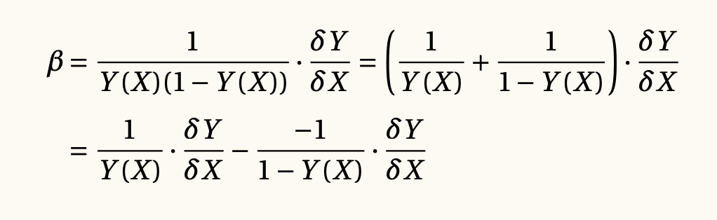 1 / (Y(X) * (1 - Y(X))) = 1 / Y(X) + 1 / (1 - Y(X))