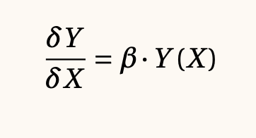 La razón de cambio de Y respecto a X es igual a una constante beta multiplicada por el valor actual de Y, es decir: