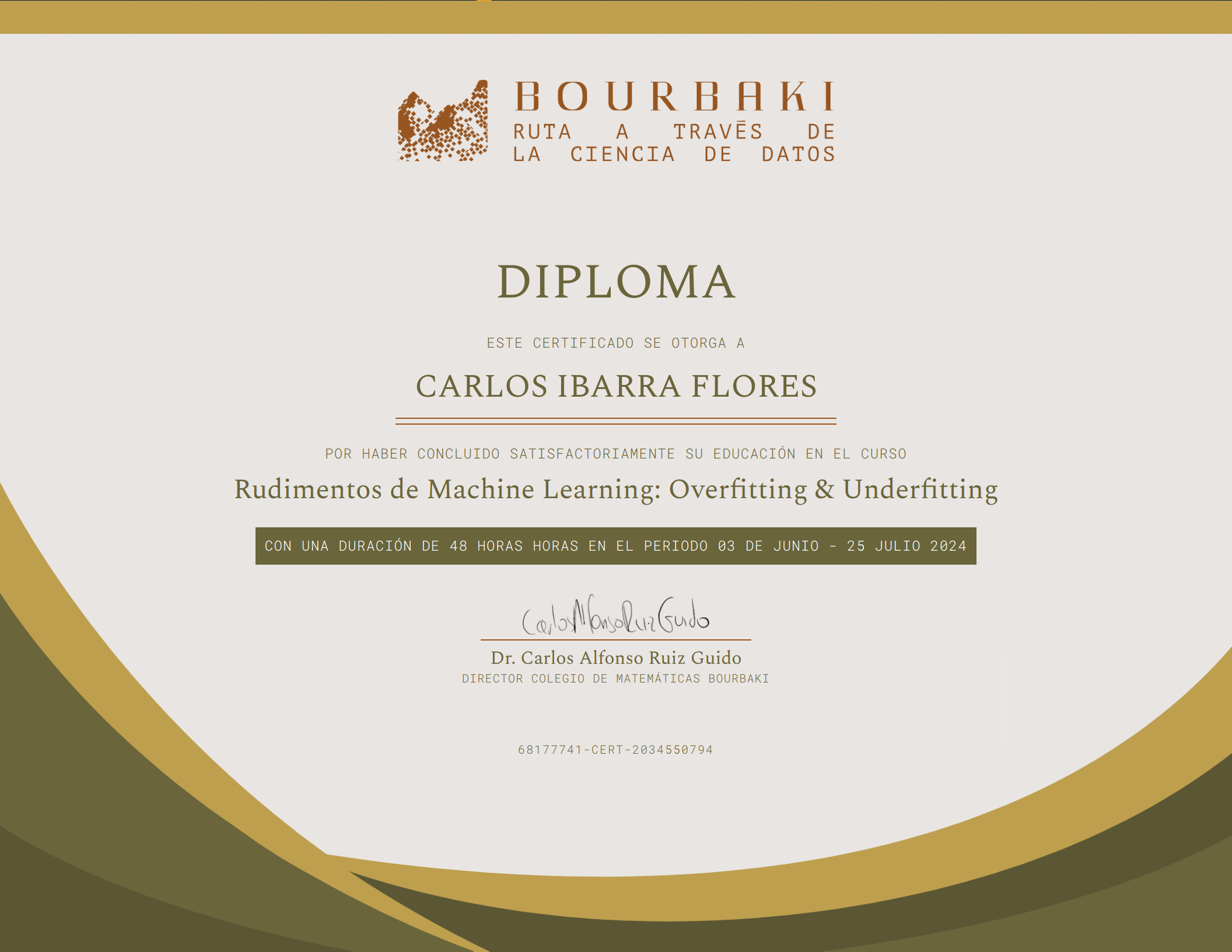 Certificado de finalización de Colegio Bourbaki