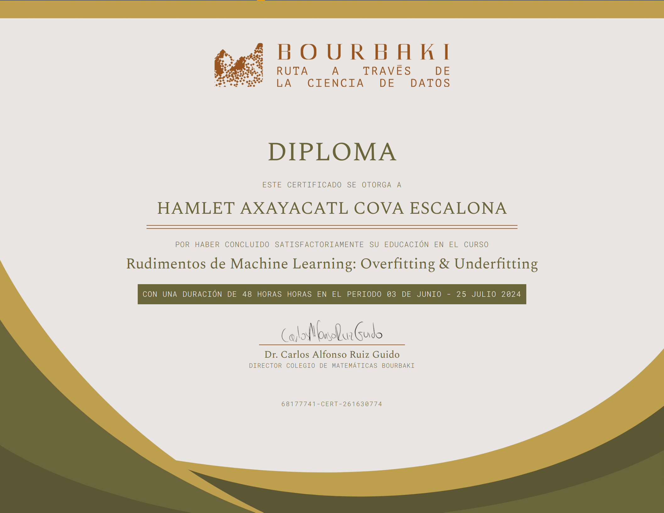 Certificado de finalización de Colegio Bourbaki
