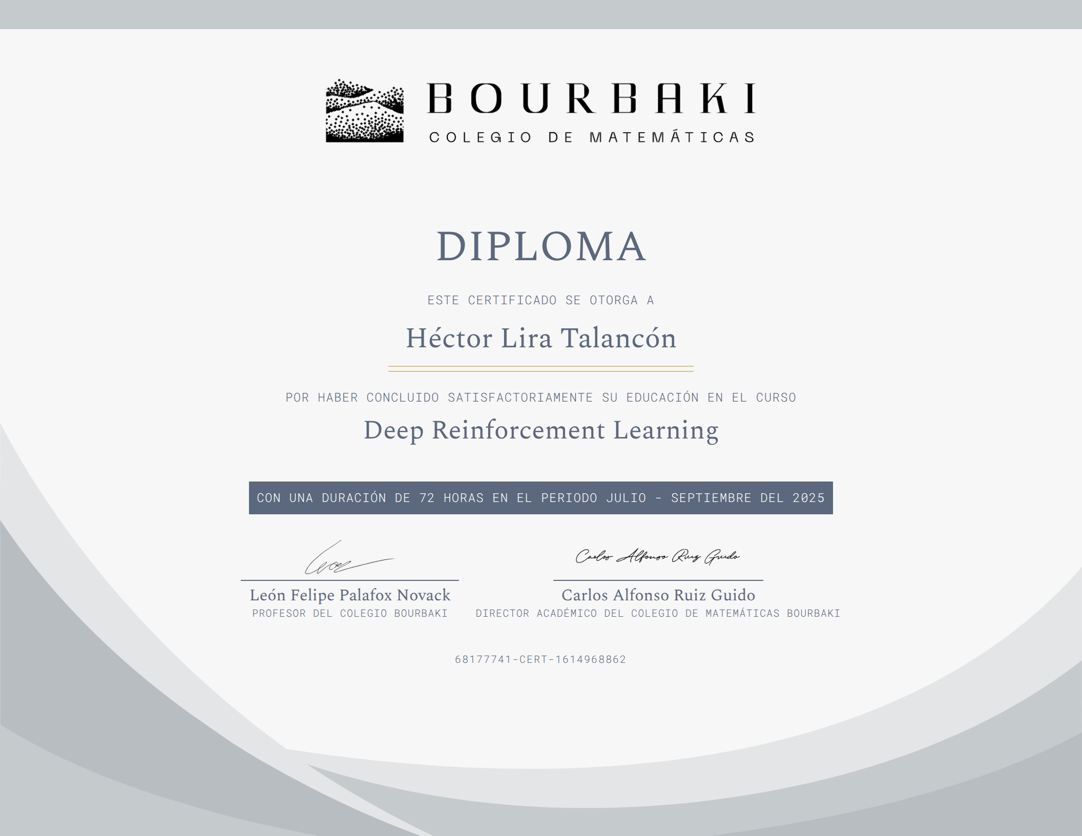 Certificado de finalización de Colegio Bourbaki