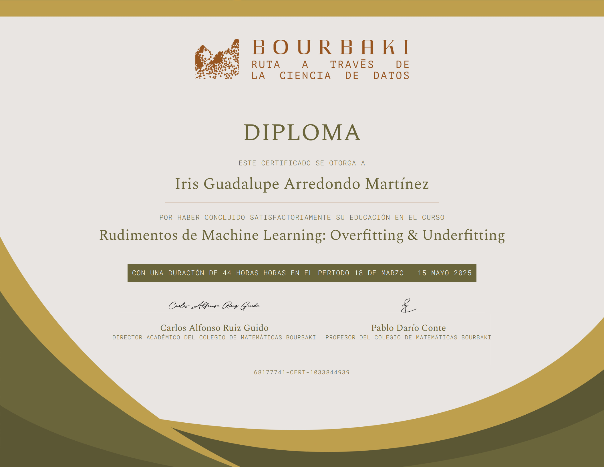 Certificado de finalización de Colegio Bourbaki