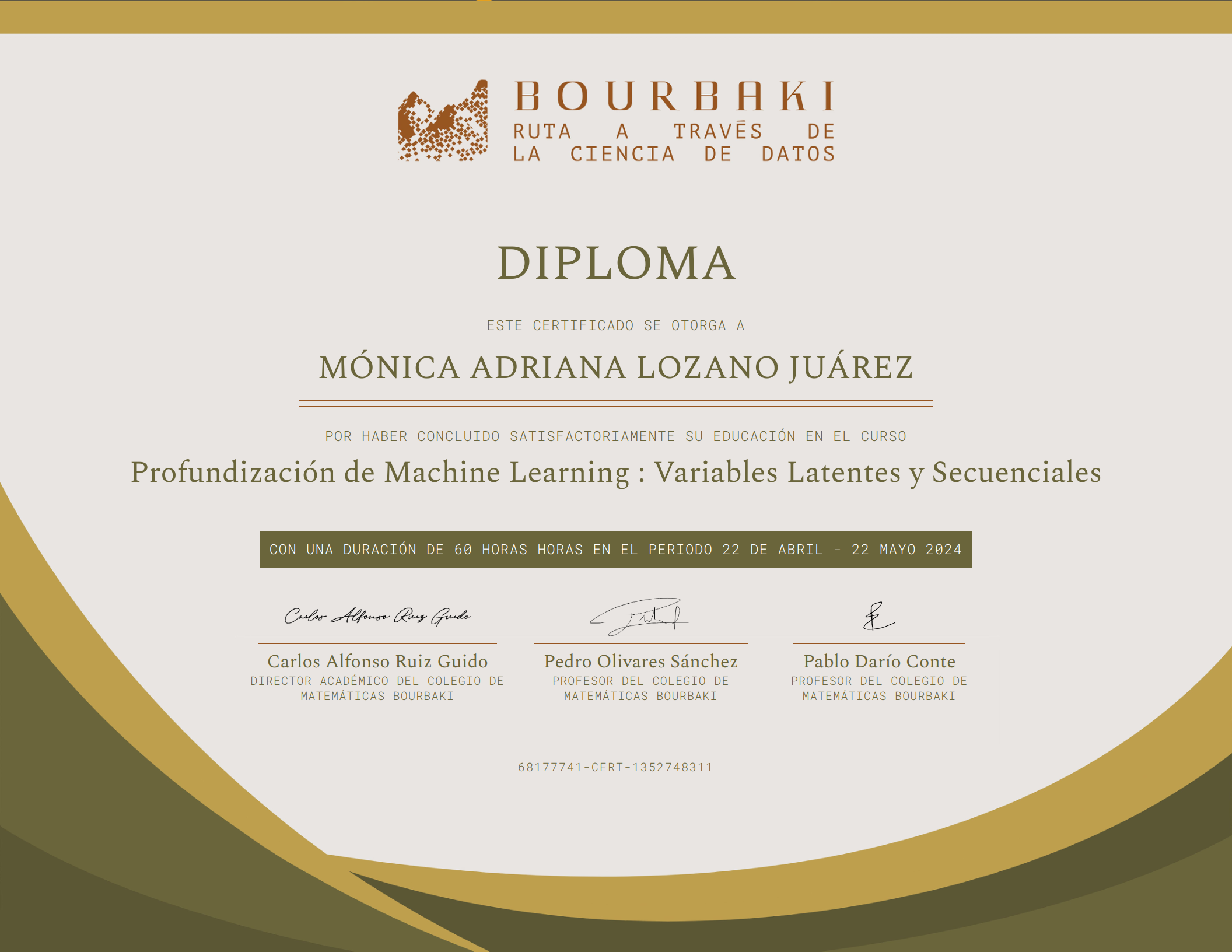 Certificado de finalización de Colegio Bourbaki