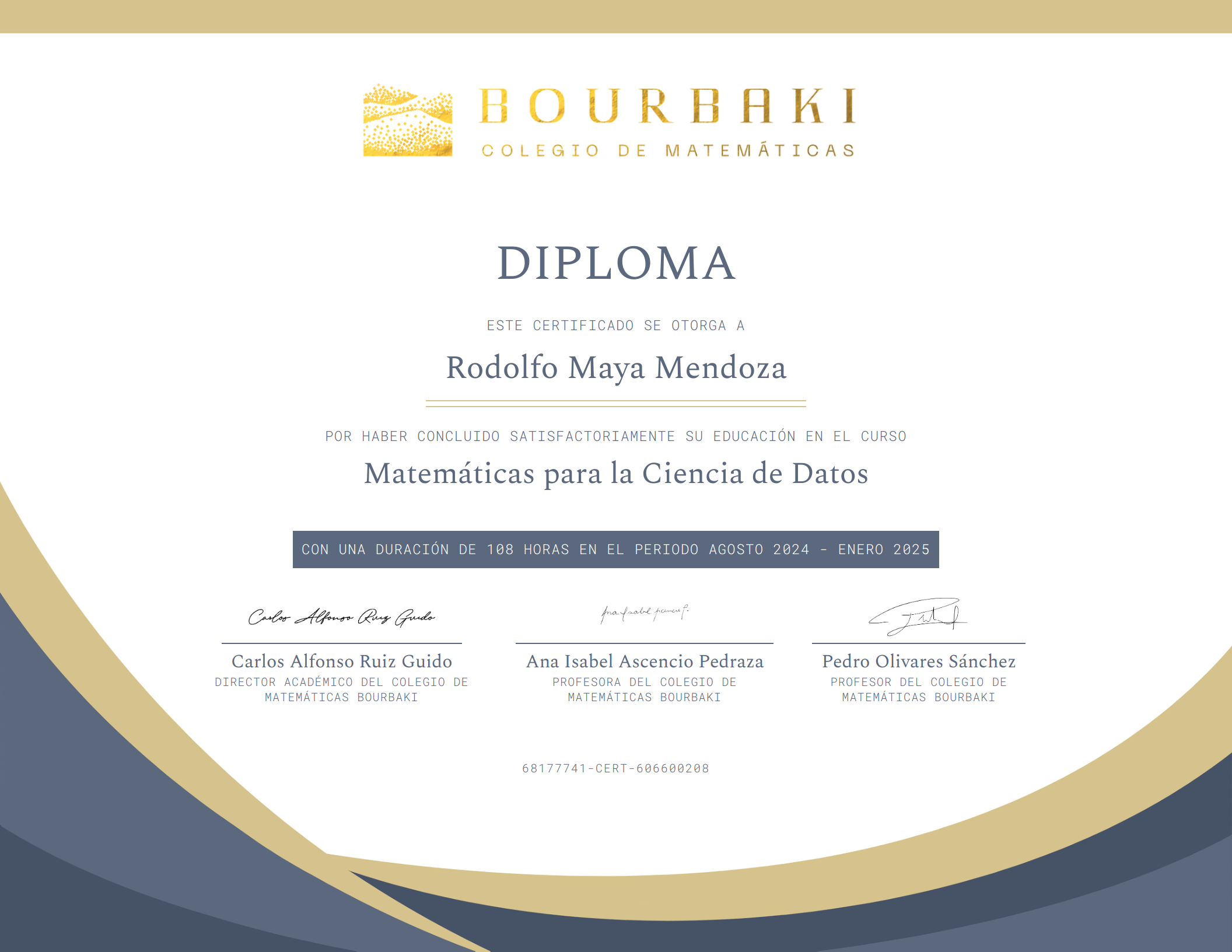 Certificado de finalización de Colegio Bourbaki